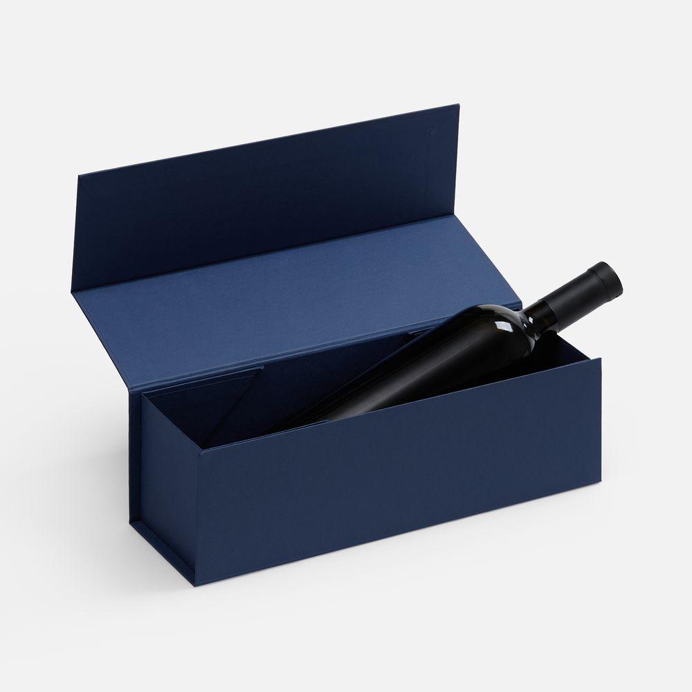 Коробка складная под бутылку Color Jacket Fold, темно-синяя 34х11х10,5 см; внутренний размер 32,5x9,7x9,1 см