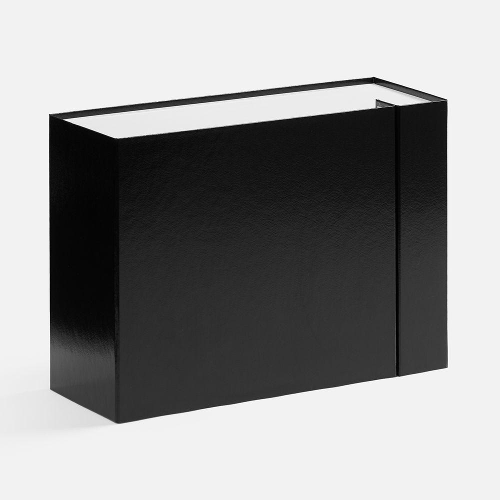 Плотная коробка из переплетного картона толщиной 2 мм с практичной конструкцией на двух створках. Складная система с уже нанесенным двусторонним скотчем позволяет быстро собрать коробку без дополнительных инструментов. Лайнер с полуглянцевым ламинированием устойчив к повреждениям и надолго сохраняет безупречный вид.