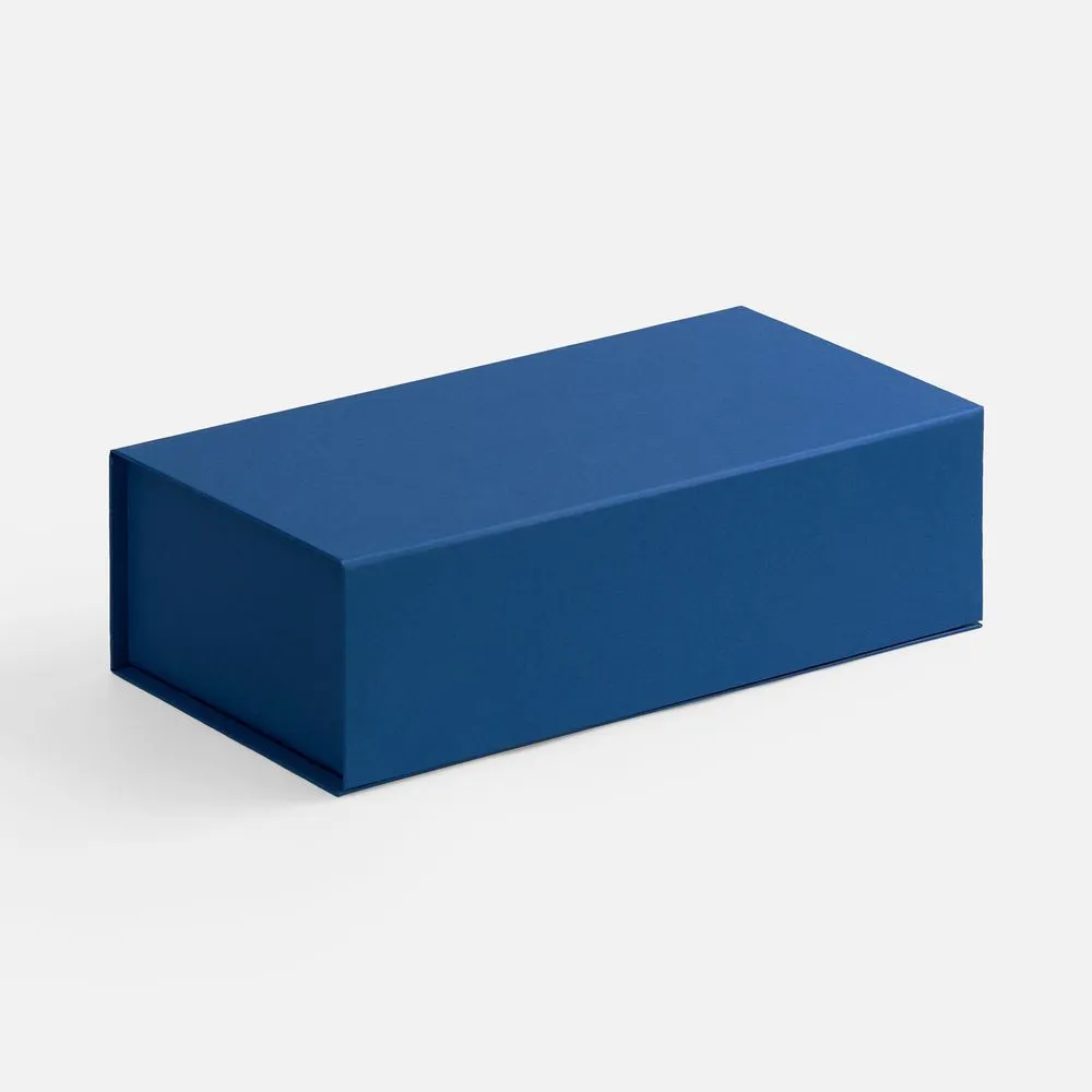 Коробка изготовлена из переплетного картона, кашированного гладкой дизайнерской бумагой Malmero, с крышкой на магните.