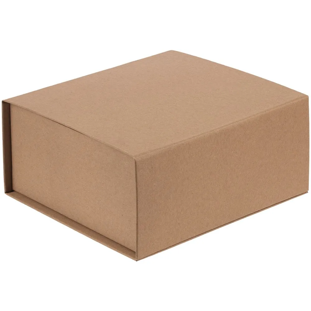 Коробка изготовлена из переплетного картона 1,5 мм, кашированного дизайнерской бумагой Ecoliner Brown 120 г/м². Бумага произведена из 100% макулатурного сырья.