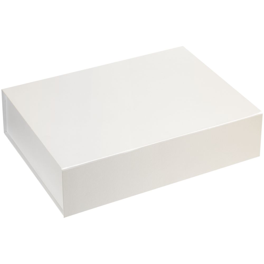 Коробка выполнена из переплетного картона, кашированного гладкой дизайнерской бумагой Majestic цвета «Золотой свет», с крышкой на магнитах.
