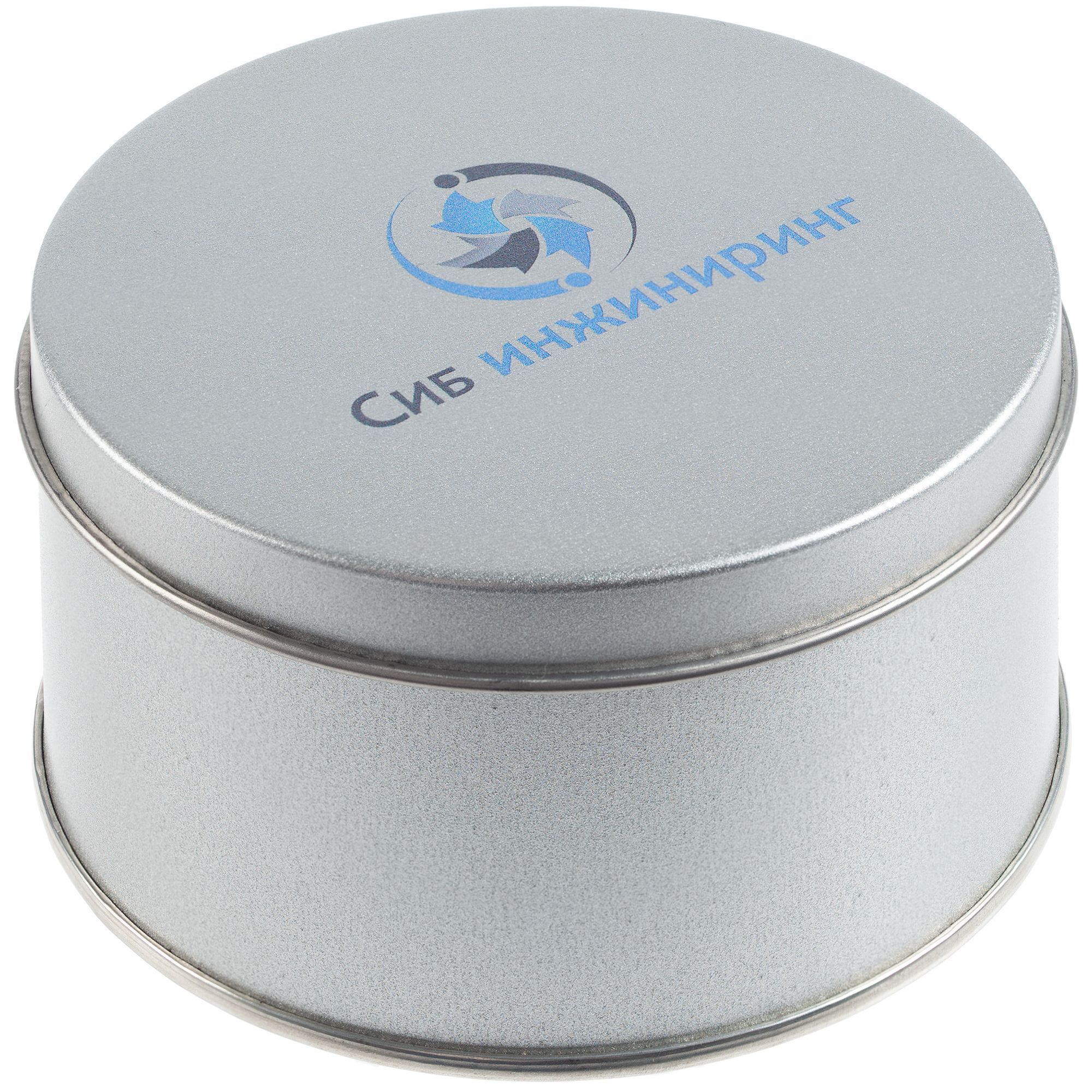 Преимущество плотной жестяной коробочки в том, что ее используют и после того, как подарок распакован — для хранения всяких необходимых в быту мелочей. Таким образом жестяная упаковка с логотипом всегда будет перед глазами ее получателя.