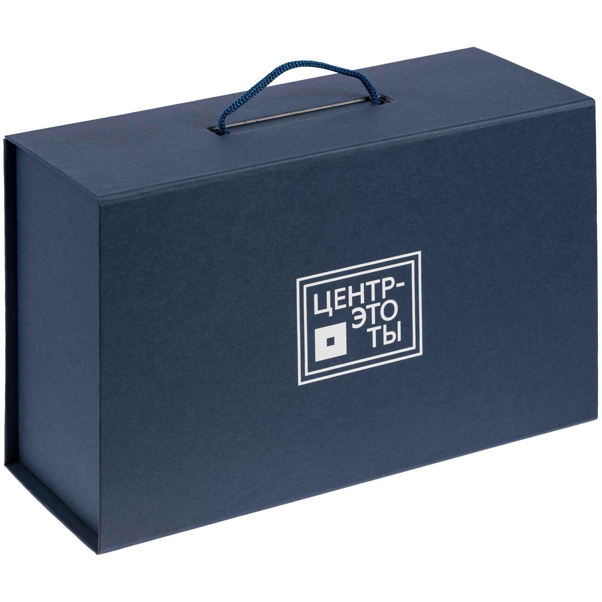 Коробка выполнена из переплетного картона, кашированного дизайнерской бумагой Malmero «Благородный синий», с крышкой на магните.
