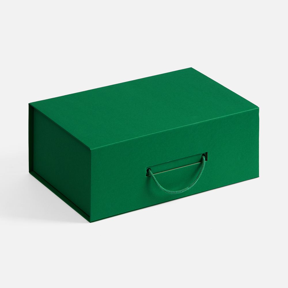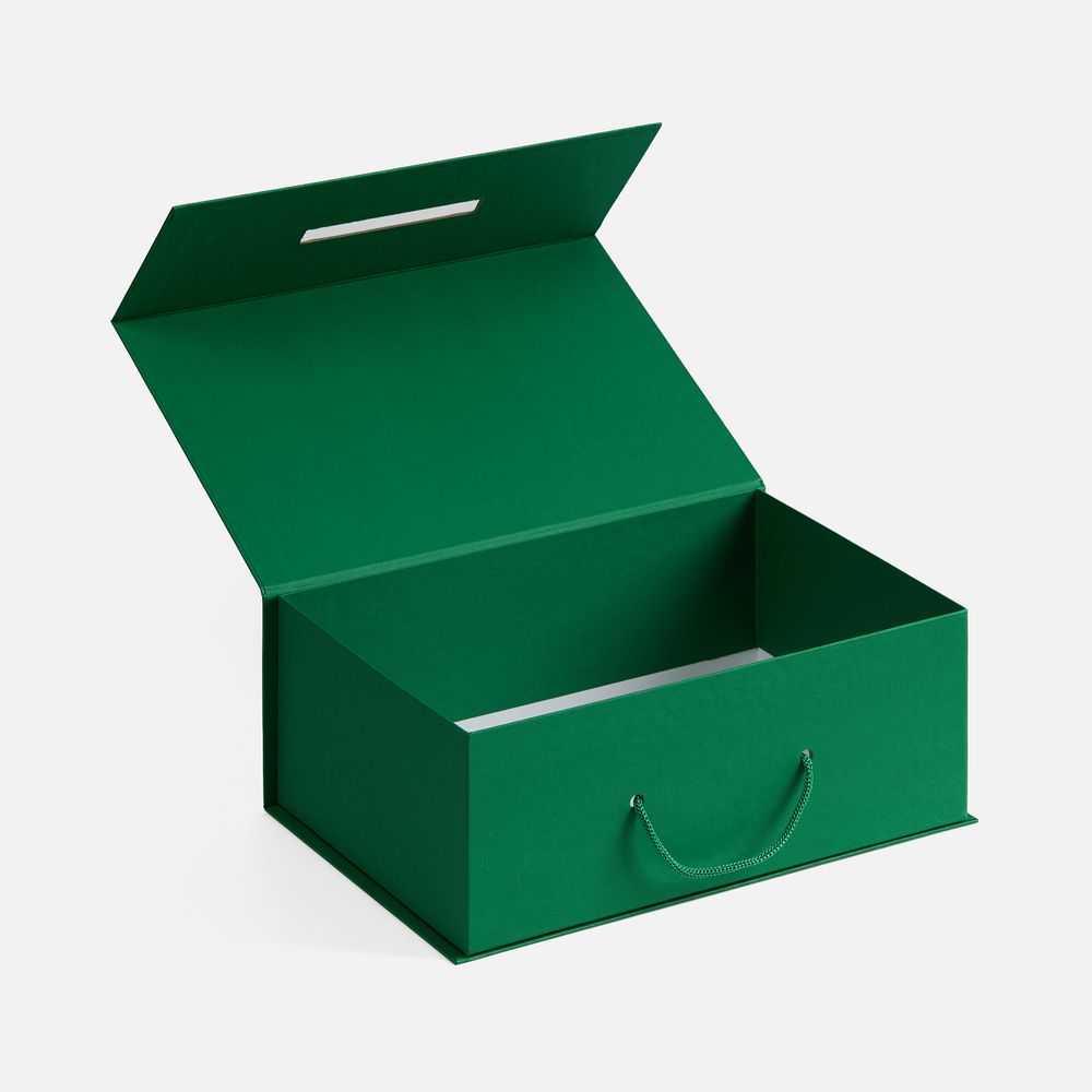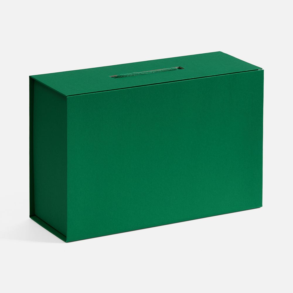 Коробка выполнена из переплетного картона, кашированного дизайнерской бумагой Malmero, с крышкой на магните.