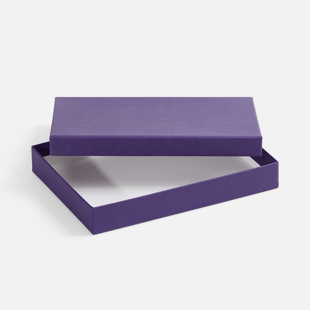 Коробка изготовлена из переплетного картона, кашированного гладкой дизайнерской бумагой Efalin.