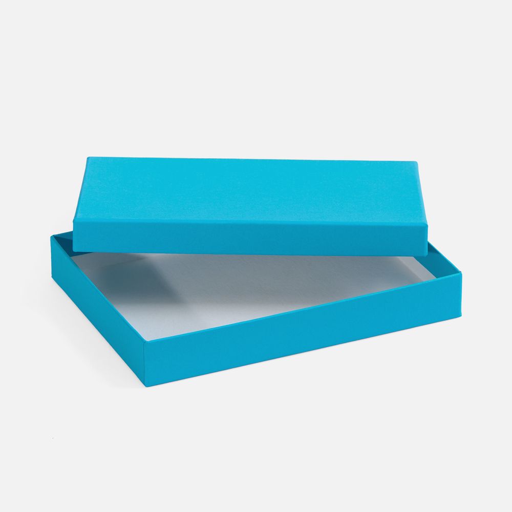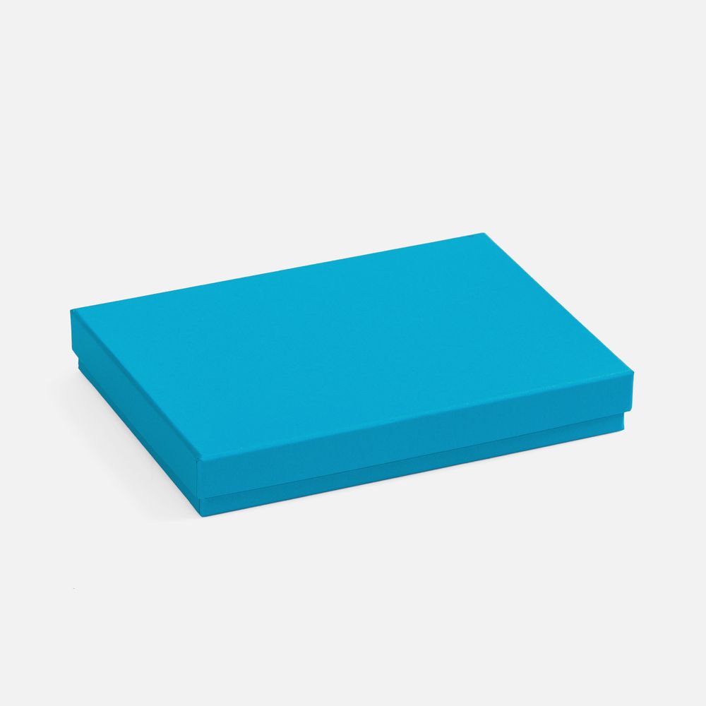Коробка изготовлена из переплетного картона, кашированного гладкой дизайнерской бумагой Malmero.