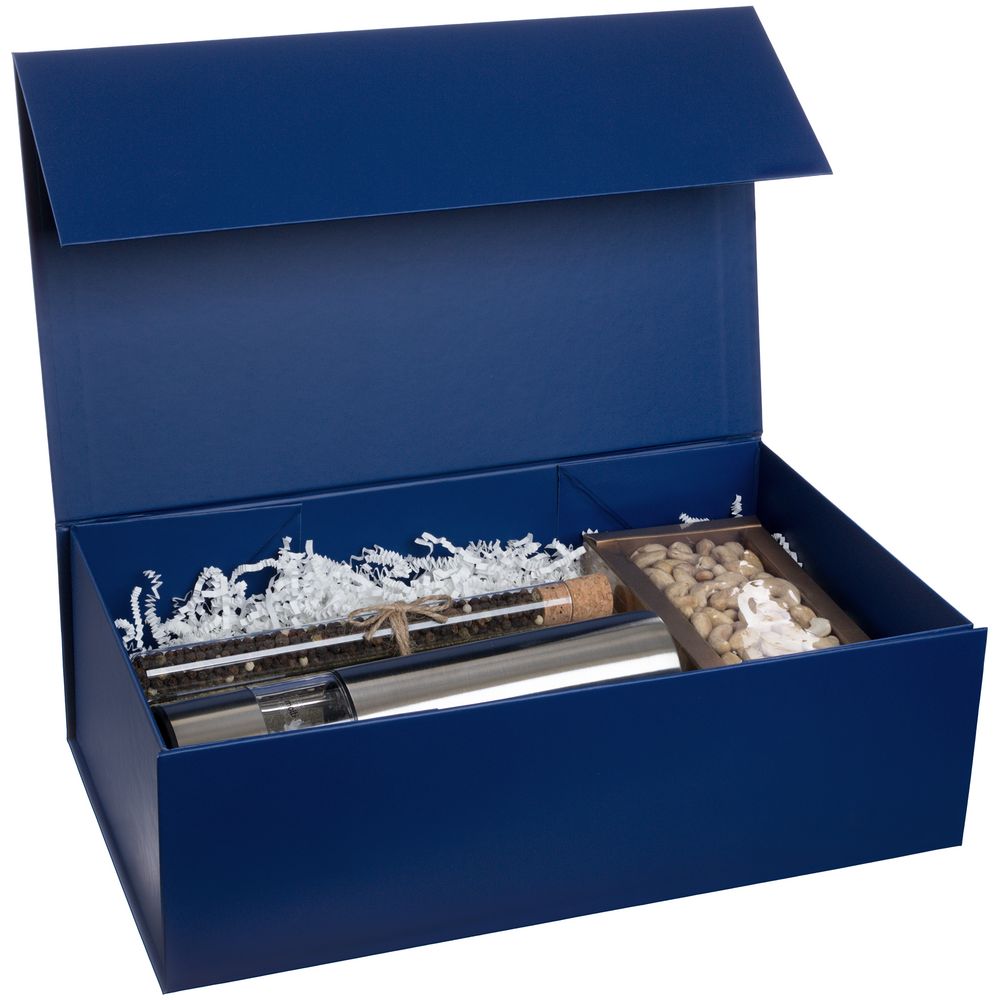 Коробка из переплетного картона, кашированного мелованной бумагой с матовой ламинацией. Крышка на магните.
