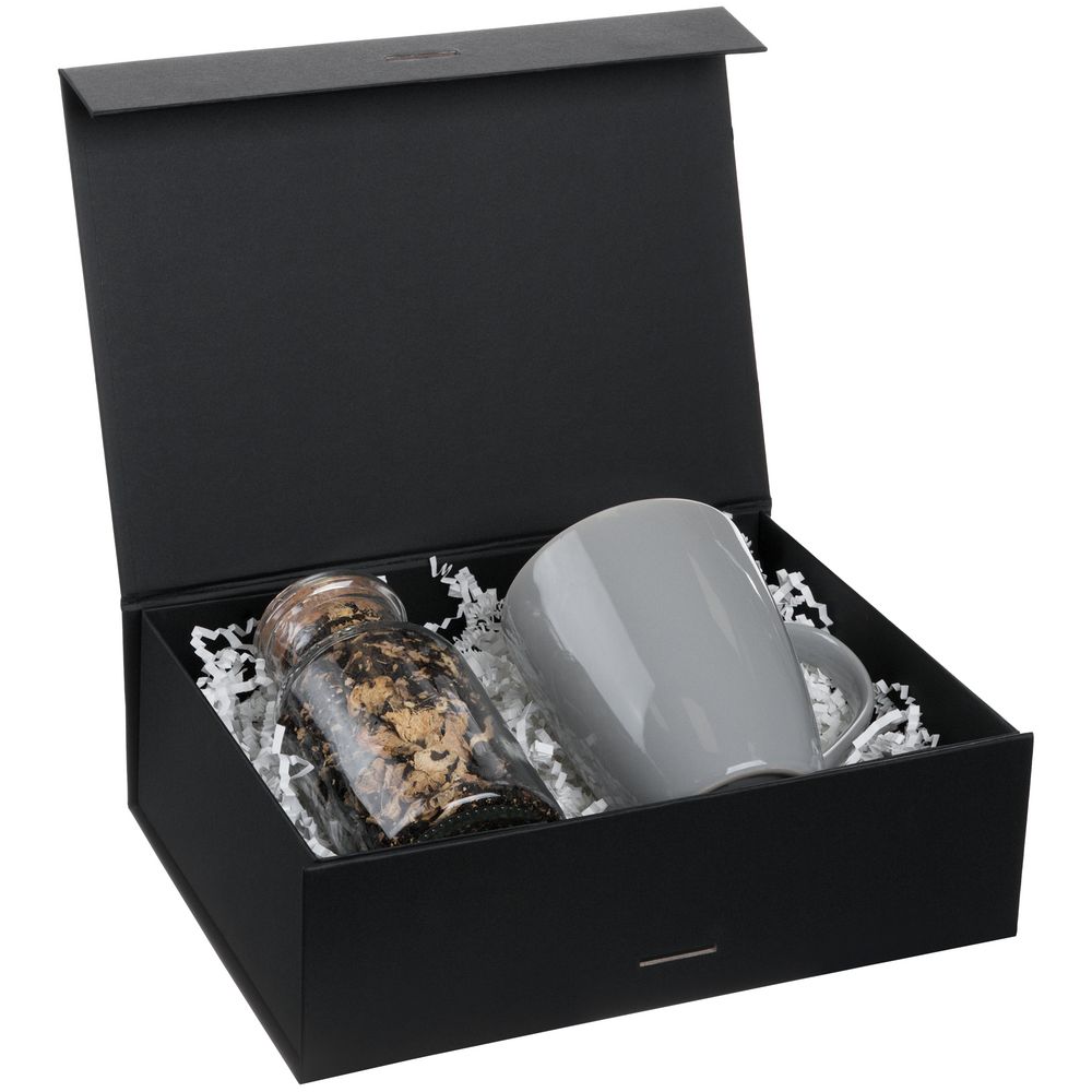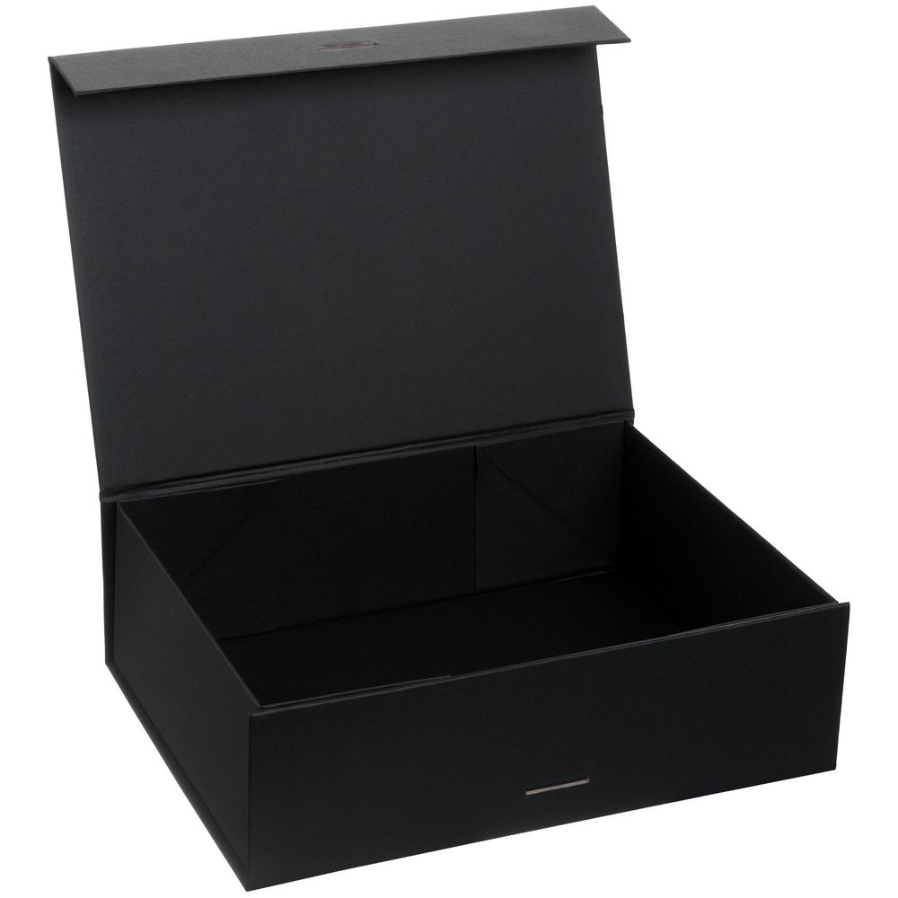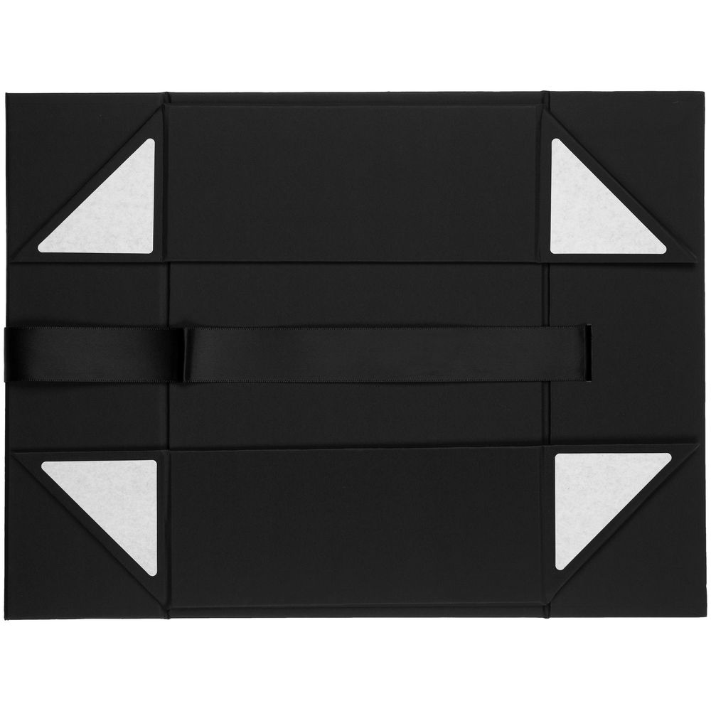 Коробка из переплетного картона, кашированного тонированной в массе крафтовой бумагой. Крышка на двух магнитах дополнительно фиксируется лентой.Толщина картона 2 мм.
