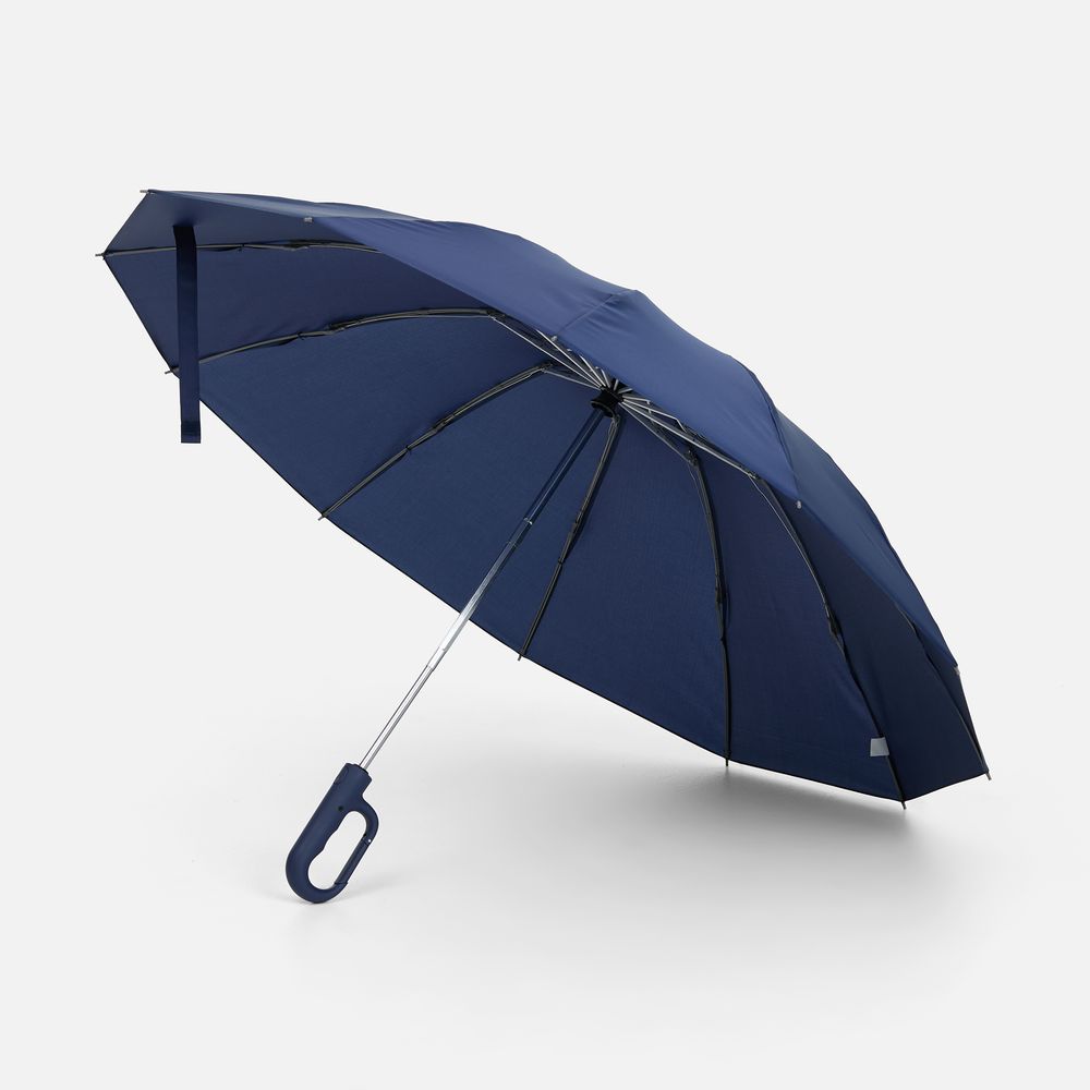 Зонт-автомат обратного сложения с 12 усиленными спицами, легким алюминиевым штоком и ручкой-карабином.