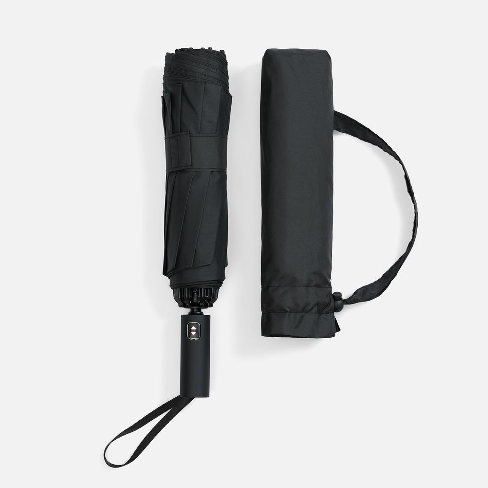 Складываясь после дождя, зонт прячет мокрую поверхность внутри, а сухая остается снаружи: так в закрытом положении он не побеспокоит окружающих и не намочит одежду. В сложенном виде зонт компактен, а благодаря чехлу-сумке на кулиске, его удобно носить с собой.