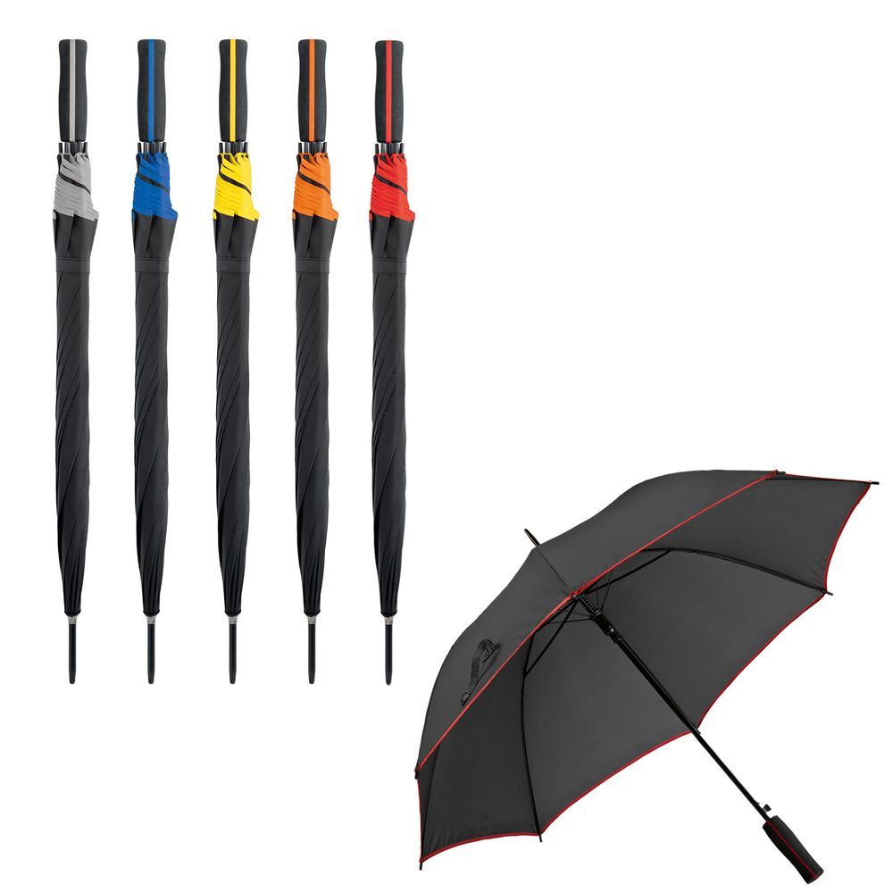 Зонт-трость с мягкой ручкой и цветными деталями на куполе и ручке.